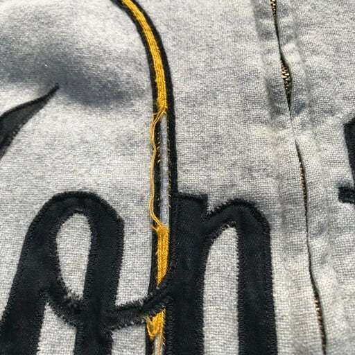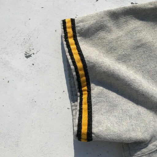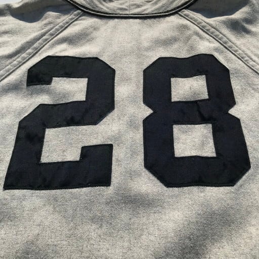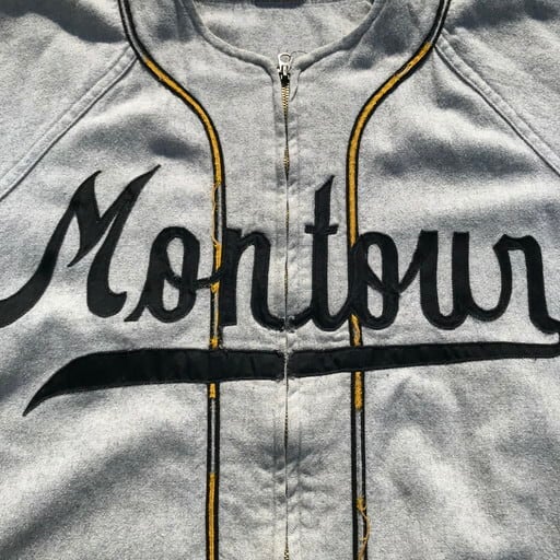 50~60's頃のWilson ウールベースボールシャツです。フロントがジッパータイプでSCOVILL社のGRIPPERジッパーが使用されています。ワッペンはナイロンのような素材です。黄色いラインに一部ほつれがあり飛んでいる箇所もございます。黒と金色が使用されていることからペンシルバニア州にあるモントゥール学区内のハイスクールのベースボールチームシャツと思われます。ダメージや汚れも少ない美品です。