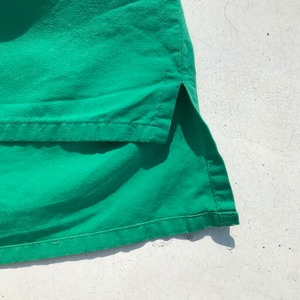 CocaColaのオフィシャルレーシングチームシャツです。恐らく80~90年代頃の物と思われます。オープンカラーとなり、ボックスタイプですが後ろ身頃が少し長い作りとなっています。グリーンのボディに鮮やかな配色でプリントされていてとても夏らしい1着。汚れやダメージは特にございません。探すと以外に見つからないデザインのシャツです。サイズはLサイズで身幅ゆったりです。ショーツに合わせてラフなスタイルにいかがでしょうか。