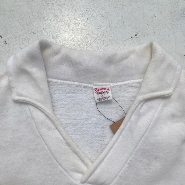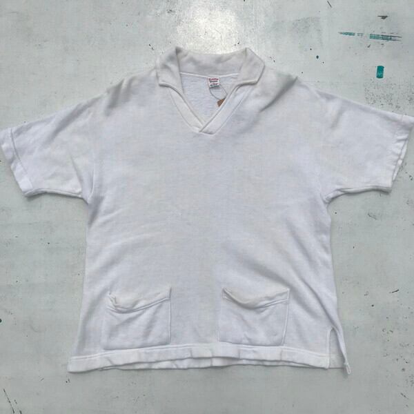 50's 60's SPORTSWEAR OF Quality 半袖スウェットシャツ セパポケ 襟付き ホワイト TULTEX 珍品 L 希少 ヴィンテージ