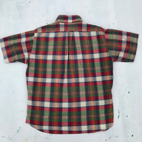 50's 60's Sun-n-Sand マドラスチェック BDシャツ 半袖 グリーン レッド TAILORED IN INDIA HAND WOVEN GENUINE BLEEDING MADRAS コットン100% インド製 Lサイズ 希少 ヴィンテージ