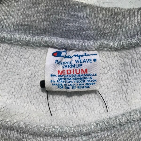 80年代後半頃のChampionリバースウィーブスウェットです。杢グレーにLEHIGH UNIVERSITYの3段プリントが入ります。コットン89%アクリル8%レーヨン3%表記でトリコタグでいう後期頃の物と思われます。左袖口にややダメージがございます。ブラウンでのプリント物はあまり見かけないので新鮮です。MEDIUMサイズですので男女問わずに着用しやすい1着です。