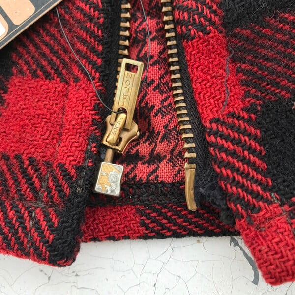 40年代から50年代頃のウールハンティングジャケットです。メーカーは不明。一見スポーツジャケットのようですが背面にはゲームポケットがございます。背面ポケット(首元から裾)のみ千鳥格子柄の裏地があてられており、袖や全面は裏地無しとなっております。ジッパーはデコタロンのコの字留めで、胸ポケットは7連のチェーンジッパーが採用されています。袖口の裏地にダメージがございます。襟にも3mmほどの虫食いが見られます。通常のハンティングジャケットに比べ、ジャスト丈で着るようなシルエットで野暮ったくなくすっきりとしています。