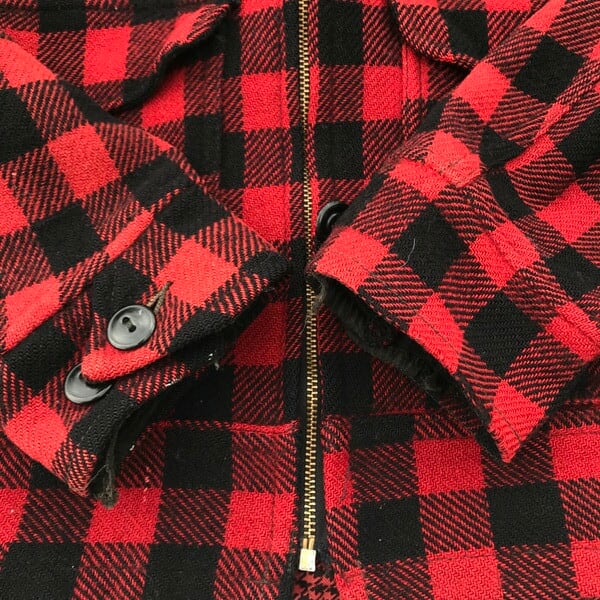 40's 50's UNKNOWN バッファローチェック ウールハンティングジャケット スポーツジャケット レッド デコタロン コの字 7連チェーン 38 S~M相当 希少 ヴィンテージ