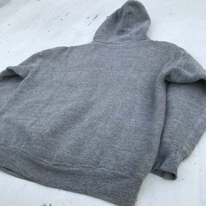 60年代あたりに作られたと思われるパーカーです。フード内に巻きタグがあり、商才は不明でしたが、Sportsman’sというメーカーです。50年代頃のDAXBAK等もフード内にタグが縫い付けらていたので、そのような流れなのでしょうか、フードサイド気味に縫いつけられています。ポケットも少し歪な形も古い年代の特徴かと思います。リブは比較的少し短めです。2重構造の裏地。アウターいらずです。セットインスリーブ。60年代より以前の物に多く見られますが、近年の物でもこの仕様の物はございます。このパーカーは少し新しいのかなとも思いましたが、裏側の脇等のスチッチの終わりが1950年代のアメリカ大量生産期の名残として知られる