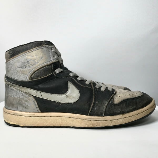 80's NIKE ナイキ AIR JORDAN1 バスケットボールシューズ オリジナル 黒灰 SHADOW シャドー レアカラー ソールリペア有 JUNK US9~9.5 KOREA製 希少 ヴィンテージ
