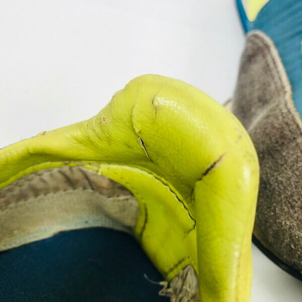 70年代から80年代頃のNIKE ELITEオリジナルです。1976年にELITEの前身モデルとされるSPECIAL MARATHONというモデルが作られ、その翌年にELITEとして販売されました。USA製の物と比べるとこの日本製のELITEは色が薄めで、スウッシュやヒールパッドのイエローも若干蛍光色っぽいカラーリングとなります。シュータンには通気性を高めるためにベンチレーションと呼ばれる通気口が施されているのもELITEの特徴です。スレや汚れ、ダメージが見られます。ソールはしなりますが、ミッドソールが硬化しています。サイズは恐らくUS7。コレクション用にいかがでしょうか。※古いものですので、あくまで観賞用としてお買い求めください。