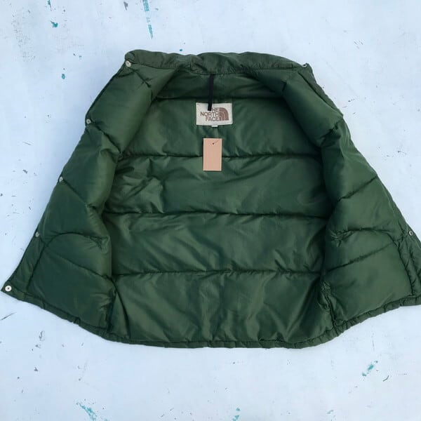 70's THE NORTH FACE ノースフェイス 茶タグ 初期 ダウンベスト 無刻印ボタン グリーン Sサイズ ラウンドポケット 希少 ヴィンテージ