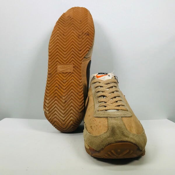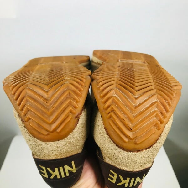 70年代後半から80年代初頭頃のNIKE OCEANIA CANVASです。ナイロンタイプとスエードタイプは見かけますが、キャンバスタイプは珍しいのではないでしょうか。ベージュとブラウンのコンビが落ち着いていてすっきりとした印象です。シュータンはのスポンジもまだ残り、アーチクッキーも硬化しきっていないので柔らかいです。ソールもまだしなり、こちらも硬化しきっていないと思われます。アッパーにシミやスレはございますが、ヒールパッドはレザー割れ等無く状態は良好です。レアなキャンバスモデルですのでコレクションにいかがでしょうか。※古いものですので、あくまで観賞用としてお買い求めください。