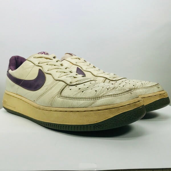 80's NIKE ナイキ AIR FORCE 1 LOW エアフォース1 オリジナル スニーカー バッシュ ホワイト パープル 白紫 ビッグサイズ US14.5 ディスプレイ用 選手用 83年 KOREA製 希少 ヴィンテージ