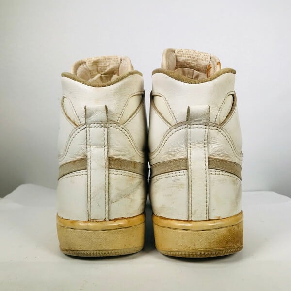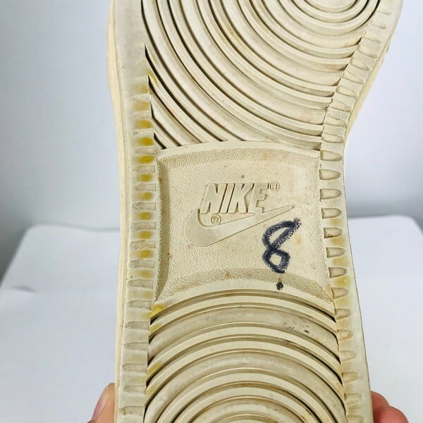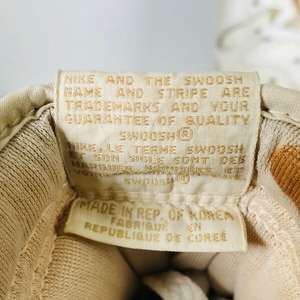 80年代のNIKEチームコンベンションです。エアジョーダンとならび人気も高くコレクションされている方も多いモデルです。85年のKOREA製。カラーは白灰で、全体に擦れやシミ、ソールの日焼けがございます。アンクルパッドは若干硬化していますが、ソールは硬化しておりません。サイズもUS10.5とバッシュとしてはゴールデンサイズですので、お探しだった方は是非。
