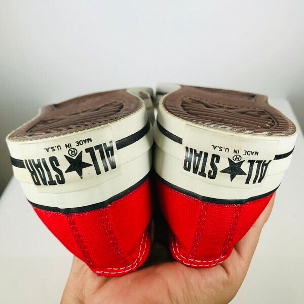 90年代のコンバースオールスターローです。1966年に登場したカラーバリエーションのレッドは現在も定番として人気のカラーです。デニムや軍パンとも相性がよく、アメカジなスタイルからスタイリッシュなスタイルまで幅広くお使いいただけます。希少な箱付きデッドストックです。2000年代初頭にUSAコンバースが倒産し、以降USA製コンバースは年々価格も高騰しております。この機会に是非希少なUSA製コンバースはいかがでしょうか。US8