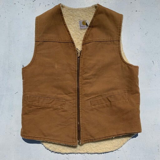 70's Carhartt カーハート ブラウンダック ワークベスト 裏ボア プリントタグ MEDIUM ユニオンチケット USA製 希少 ヴィンテージ