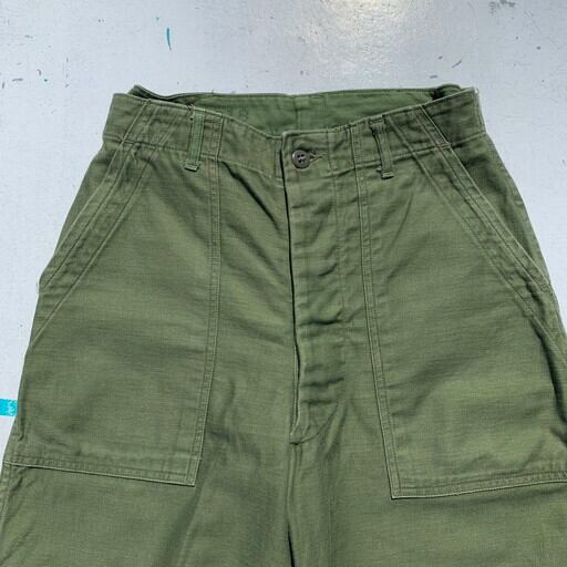 60's U.S.ARMY コットンサテンベイカーパンツ SMALL オリーブ DSA-1-151-C-62 初期 オフセットループ サイドアジャスター付き w30位 ミリタリー 米軍 希少 ヴィンテージ