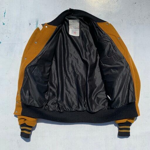 80's Delong デロング アワードジャケット スタジャン ウール マスタード Versity テディー ワッペン USA製 肩ライン 38 希少 ヴィンテージ