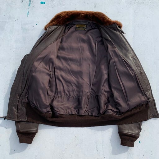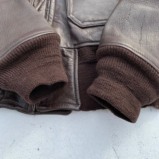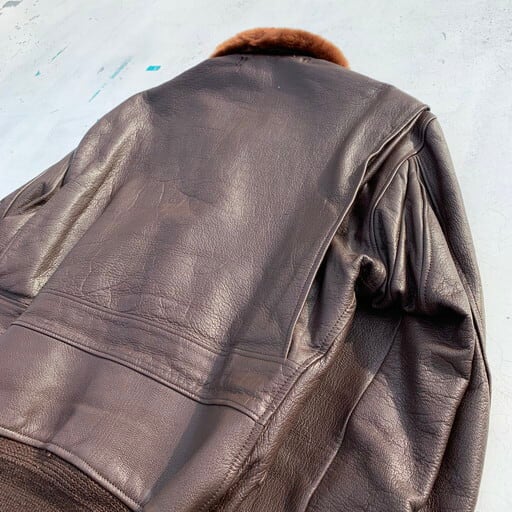 50年代から60年代頃のU.S.NAVY G-1フライトジャケットです。1952年から1960年に製造されたMIL-J-7823モデルです。L.W.FORSTER SPORTSWEAR社の物はディティールが様々な物も多く存在していたようで、こちらは襟裏にステンシル、前立てにパンチングが入るという過渡期のような作りとなっています。襟ボアも状態がよくボディのレザーは硬化は無く非常にしなやかです。袖と裾リブも虫食い等無くミントコンディションと言える1着です。サイズは38と、ゴールデンサイズです。黒タグでここまで綺麗な個体はなかなか出ないので、お探しだった方は必見です。