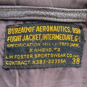 50's 60's U.S.NAVY G-1 レザーフライトジャケット 黒タグ MIL-J-7823(AER) L.W.FORSTER SPORTSWEAR CO.INC ステンシル パンチング 美品 38 ミリタリー 希少 ヴィンテージ