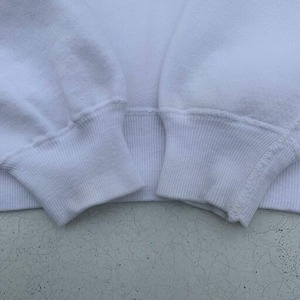 50年代頃のセットインスリーブスウェットです。タグ無しの為メーカー不明。無地のホワイトで、身幅が広く着丈は短めです。リブ等は4本針でステッチされています。一部薄いシミ等ございますが、生地にダメージは特になく状態は良好です。ショルダーがドロップする絶妙なシルエットですので、レイヤリングも楽しめる1着です。