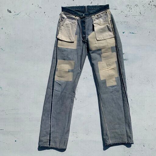 40's 50's LEVI'S リーバイス 501XX 47-52モデル オリジナル デニム スペシャル 革パッチ センターセット リベット刻印中央 Vステッチ セルヴィッジ リペア W32 大戦後 希少 ヴィンテージ BA-672 RM1040H