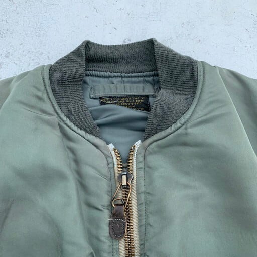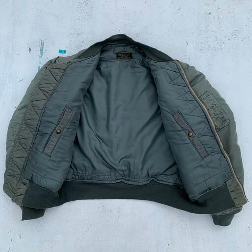 50年代頃のUSAF MA-1フライトジャケットです。ALBERT TURNER社、MIL-J-8279B。58年コントラクト。ストームフラップの角は丸くなり、オキシジェントタブも省略され、脇下のICSコードループのみ残ったB型後期モデルです。全体に使用感はございますが、50年代のMA-1となると希少性も高く年代を考慮しても状態は良好と言える1着です。リブにダメージ、フロントジッパーテープに所々生地が弱くなっている箇所がありスムーズではござませんが開閉可能です。サイズ感も良く男女共に着用可能ですので、お勧めです。