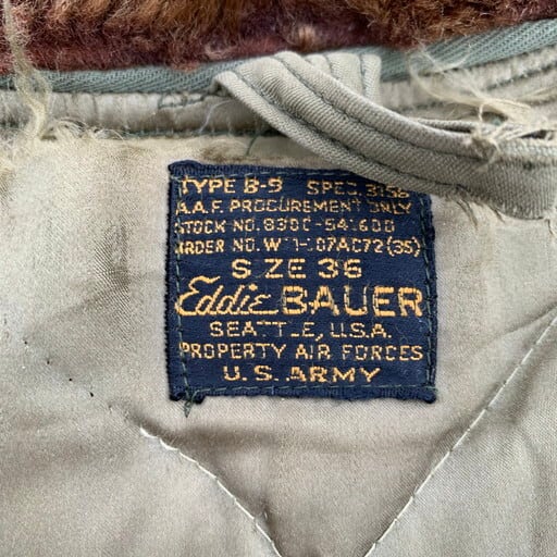 40's EDDIE BAUER USAAF B-9 フライトジャケット 43年~44年 ダウン ムートン 黒タグ 陸軍航空隊 WW II 大戦 36 希少 ヴィンテージ