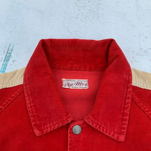 50年代前後のコーデュロイアワードジャケットです。Pla-Morというメーカーのタグが付いていますが、詳細は不明。ニューヨーク州にあったボーリング場に由来するものかもしれません。胸元にはフリーメイソンの関連団体であるDeMolay(デモレー)のチェーンステッチが入ります。背面にはステッチは無くシンプルなデザインです。リブにダメージや汚れはございますが、比較的状態は良好です。貴重なフリーメイソン関連のアイテムです。コレクター必見です。