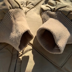70年代頃のEddie Bauer スカイライナーダウンです。1936年に世界で初めてダウンを使用したアイテムを製造したエディーバウアーが最初に作ったダウンジャケットがこのスカイライナーです。こちらは黒タグが付く70年代頃からのアイテムで、カラーは人気のタンです。襟リブに変色、全体に使用感やうす汚れはございますが、目立つダメージ等は御座いません。サイズ表記はありませんが、40(L)位です。比較的状態も良いのでお勧めな1着です。