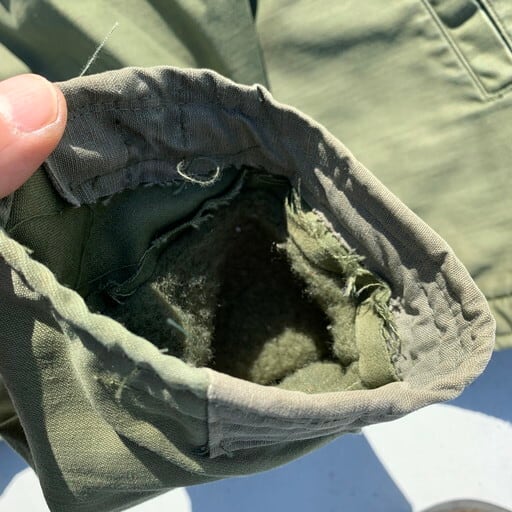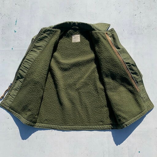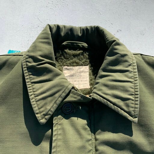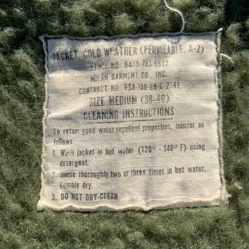 60年代のU.S.NAVY A-2デッキジャケットです。 DSA-100-68-C-2141、MILAN GARMENT社。N-1デッキジャケットの後継として60年代初頭に導入されたアイテムで、A-2の初期型は胸のポケットのフラップの形状が三角となります。こちらは68年コントラクトの後期モデルとなります。PRENTICのアルミジッパー胸元と背面にステンシルが入ります。両袖口のリブはカットされており、左袖口と、背面にリペアが見られます。ジッパーは交換されています。ボタンホールも少し緩くなっている為状態特価です。雰囲気の良い秘境な60年代のA-2-2ですので、お探しだった方は是非。