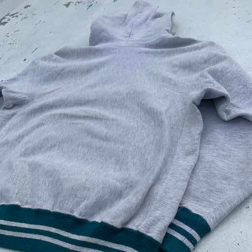 90's Champion チャンピオン リバースウィーブ RW スウェットパーカー ロゴ リブライン 刺繍タグ グレー エメラルド USA製 LARGE 希少 ヴィンテージ