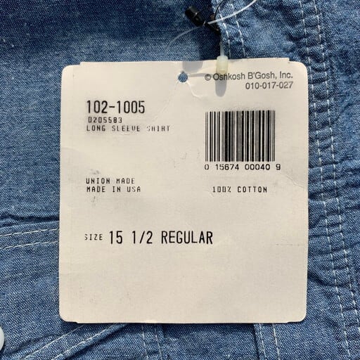 80's OSHKOSH B'GOSH シャンブレーシャツ タグ付き デッドストック USA製 15 1/2 ワークシャツ 希少 ヴィンテージ