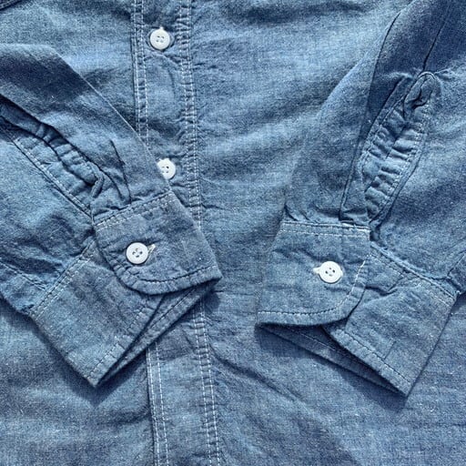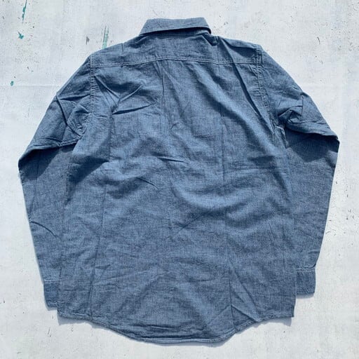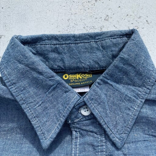 80年代頃のOSHKOSHシャンブレーシャツです。販売時に付くタグが付属している事から未使用のデッドストックと思われます。織りジワ等はございますが、虫食いやヤケ等は無く綺麗です。サイズもゴールデンな15 1/2REGですので普段Mサイズを着用される方におすすめなサイズ感です。洗濯後縮みが入る可能性もございますので、乾燥機の仕様は十分に気を付けてください。オーソドックスで定番のシャンブレーシャツですので、幅広いスタイルに合わせていただける万能アイテムです。1枚あると3シーズンは使え重宝します。お勧めです。