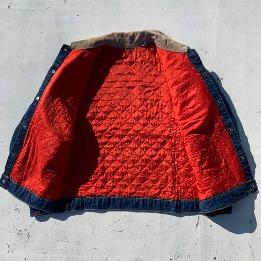 60年代のBUCKAROOキルティングライナーデニムジャケットです。1916年創業の老舗ワークウェアブランドで、50年代頃にはカウボーイ向けのウェスタンラインとしてこのBuckarooを展開しました。襟とフラップがコーデュロイで施されており、プリーツの入ったフロントなど特徴的なデザインです。キルティングライナー仕様ですので、アウターとしてお使いいただけます。色残りは6~7割残っており濃いめで、擦れ等はございますがダメージは無く美品です。サイズは44Lとゴールデンサイズです。年々Buckarooも見かけにくくなってきたようなので、是非いかがでしょうか。