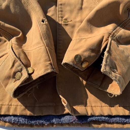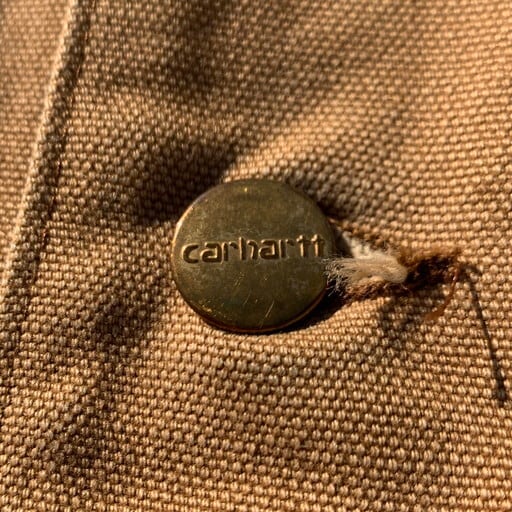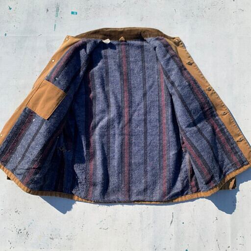 70's Carhartt カーハート ミシガンコート ブラウンダック ブランケットライナー カバーオール チョアジャケット プリントタグ ハンドペイント サイズ50 USA製 希少 ヴィンテージ