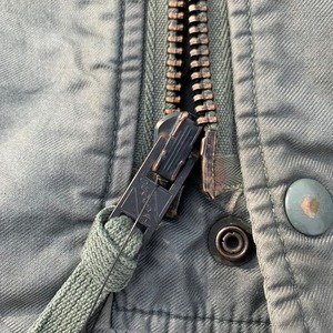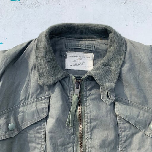 70年代のUSAF CWU-7/Pジャケットです。MA-1等の後継モデルとなるこちらは知る人ぞ知る隠れた名品として人気のアイテムです。CWU(COLD WEATHER UTILITY)シリーズではデュポン社が開発した難燃繊維のノーメックスが使用されています。このCWU-7Pはメカニック等の地上作業兵に好まれていた事もあり、袖等にダメージがある物も多く今回の個体の様にダメージの少ない美品は特に珍しい存在です。ミリタリーアイテムの中でも個体数も少なく出現率も低いアイテムですので、お探しだった方は必見です。シワ等はありますが、ダメージはほぼ無くグッドコンディションです。元々着丈が短いアイテムですので、着やすいLARGEサイズというのも嬉しいポイントです。
