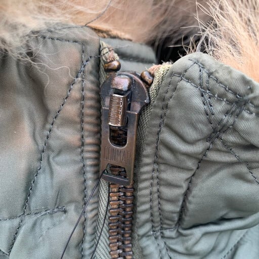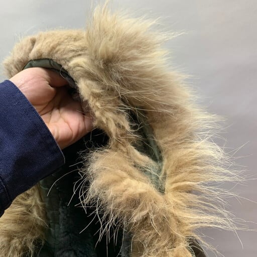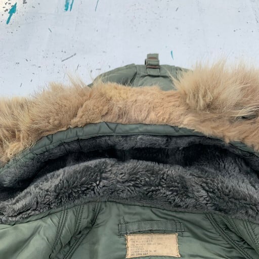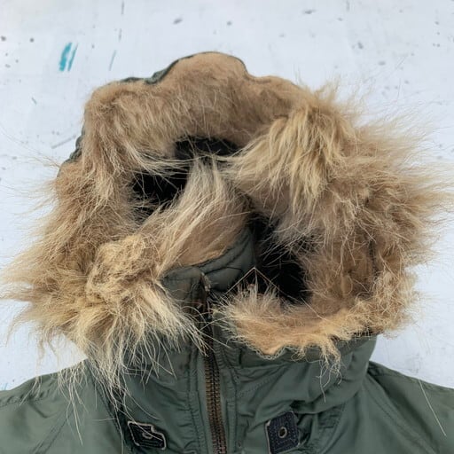 60年代のU.S.AIR FORCE N-3Bフライトジャケットです。MIL-J-6279F / DSA-1-2103-63-C。63年コントラクトのこちらは白タグが付くモデルです。フロントはCONMARジッパー、フードのドローコードは欠損しており付け根に少しダメージがございます。ジッパーの付け根も若干ダメージがございますが、現段階では開閉に問題はございません。肩のエアフォースマークもまだ濃いめではっきりと残っています。フードのコヨーテファーはあまり状態は良くなく割れや毛足が短くなっています。使用感はありますが、希少なSサイズです。状態特価ですので、お早めにどうぞ。