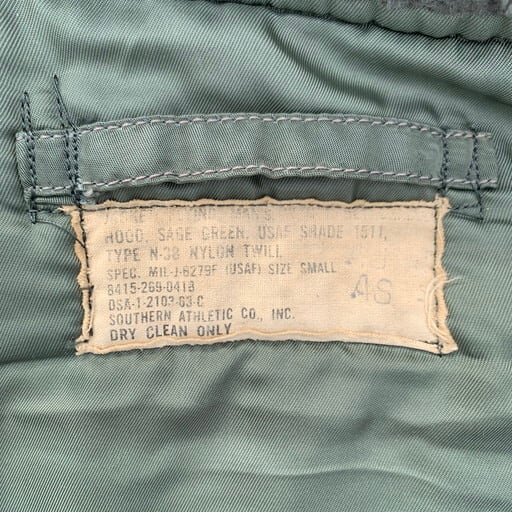60's U.S,AIR FORCE N-3B フライトジャケット 空軍 コヨーテファー 白タグ SOUTHERN ATHLETIC社製 63年 セージグリーン インシグニア SMALL 希少 ヴィンテージ