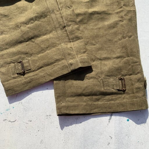 40's 50's フランス軍 モーターサイクルパンツ オーバーパンツ キャンバス地 リネン混 カーキ フレンチアーミー ユーロミリタリー W40 希少 ヴィンテージ