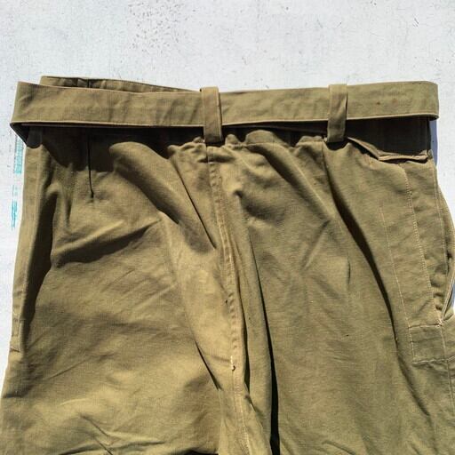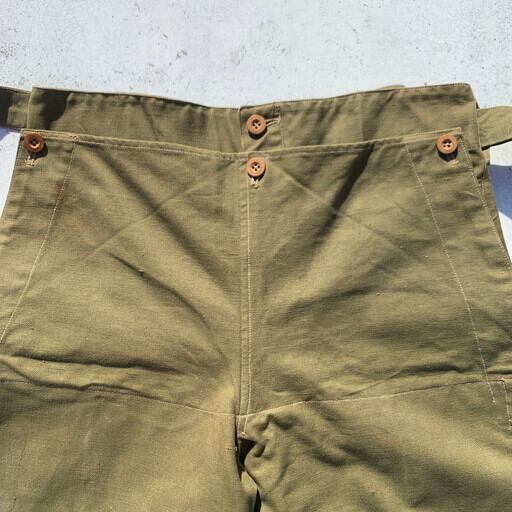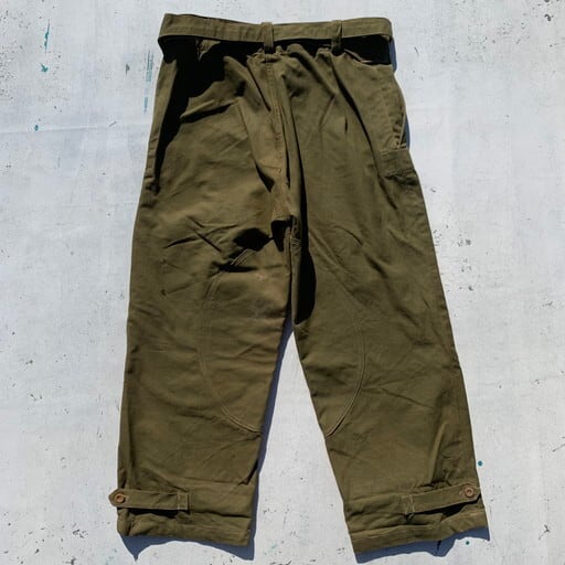 40's 50's フランス軍 モーターサイクルパンツ オーバーパンツ キャンバス地 エプロン付き カーキ フレンチアーミー ユーロミリタリー W36 希少 ヴィンテージ