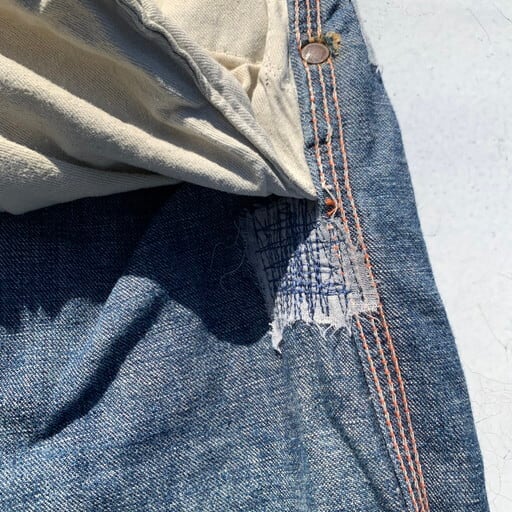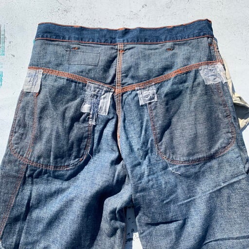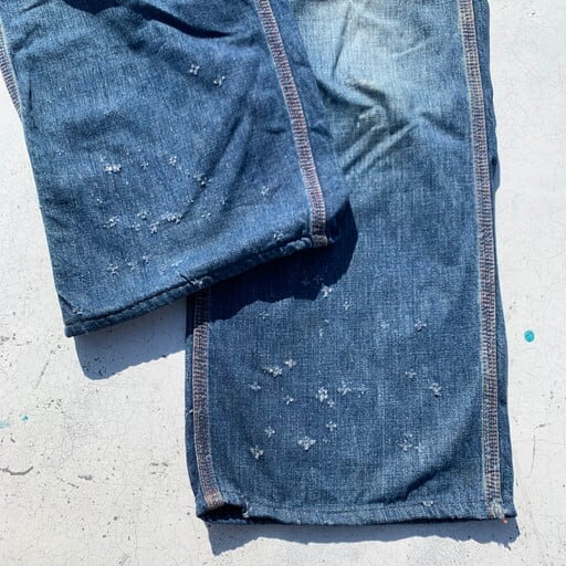 色落ちの濃淡も雰囲気がありますので、ヴィンテージらしい1本と言えます。ダメージ系デニムがお好きな方でサイズが合う方は是非いかがでしょうか。W31位。