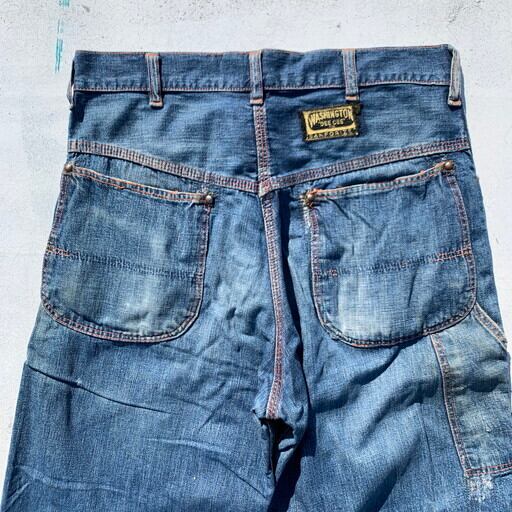 60's WASHINGTON DEE CEE デニムペインターパンツ ワーク PRENTICEジッパー 片爪 リペア有 フェード W31 USA製 希少 ヴィンテージ