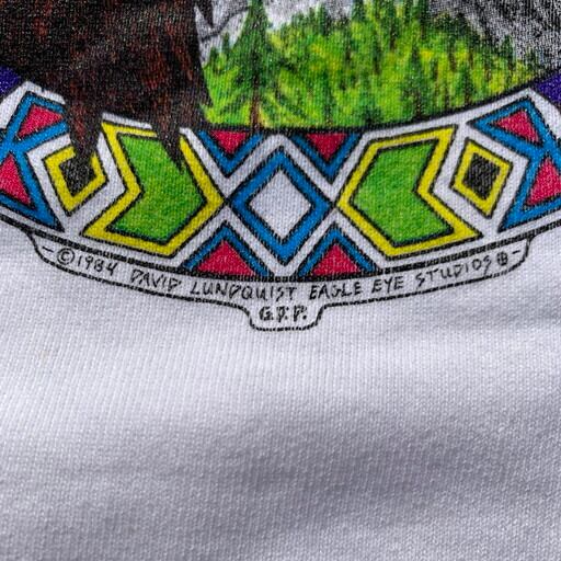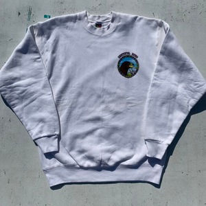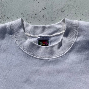 80年代のGREATFUL DEADプリントスウェットです。ボディはFRUIT OF THE LOOM。ホワイトボディーに多色使いの色鮮やかなプリントが胸元と背面に入ります。1984年にDAVID LUNDQUISTというアーティストがデザインしておりコピーライトもございます。袖等に保管時についたと思われる小さなシミが何か所かみられますが、生地の感じから恐らくデッドストックと思われ、試着程度のミントコンディションな1着です。サイズはゆったり目のLサイズ。※洗濯後縮みが入る可能性がございます。グレイトフルデッドのアイテムはデザインによって価格も様々ではありますが、80年代のスウェットとなると希少性も高く入手も困難です。デッドヘッズの皆様に是非手にして頂きたいコレクタブルなアイテムです。