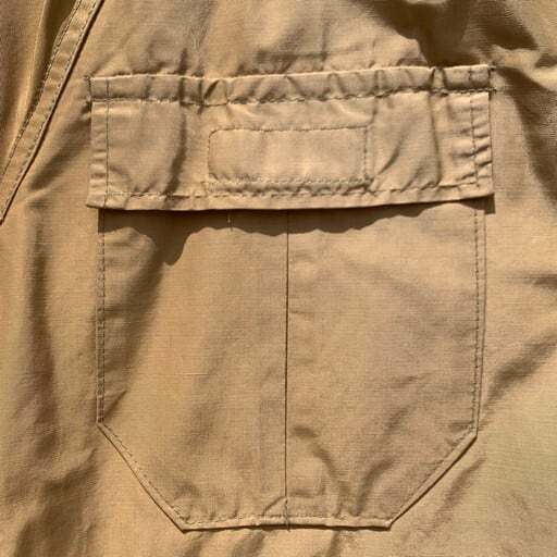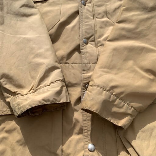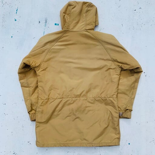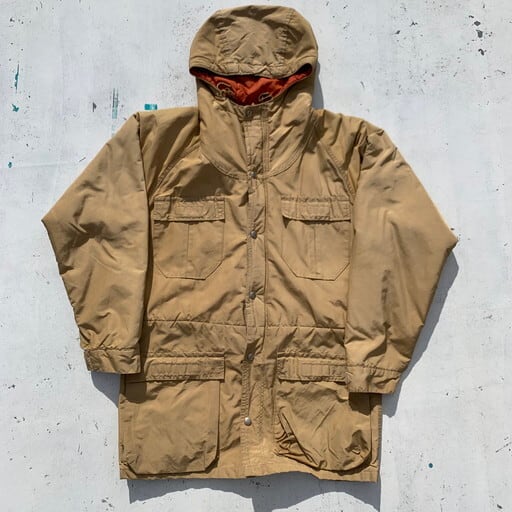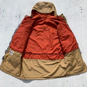 70年代のSIERRA DESIGNSマウンテンパーカーです。1965年カリフォルニア州バークレーで創業した老舗アウトドアブランドです。1968年に60/40マウンテンパーカーを発売。こちらのモデルは首タグは付かずウエスト辺りに60/40タグのみ付くタイプで、スナップボタンには刻印の無い物を使用してますので1968年~1971年頃に作られた物では無いでしょうか。フードと内側オレンジ部分には中綿が入っていますので、防寒性も高く作られています。袖口に薄汚れが有り、左袖にはシムの様な物もございますが、ダメージ等は少なく状態は良好です。名作と呼ばれる当時のオリジナルは大変貴重ですので、是非この機会にいかがでしょうか。