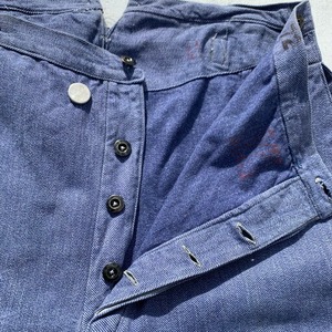 40's 50's スイス軍 デニムオーバーパンツ ライトブルー 針刺しシンチバック ユーロミリタリー メタルボタン W36 希少 ヴィンテージ