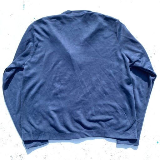70年代のUSAFアクリルカーディガンです。DSA100-75-C-1100。75年コントラクトのこちらはボタンとポケット以外に装飾など無く、非常にシンプルなエアフォースブルーが綺麗な1着です。アクリル100%ですので、袖入れも柔らかくボリュームも控えめですので、冬はインナーに春はトップスに使えます。サイズ表記は44ですが、M~L程度で一番あわせやすいサイズ感です。エアフォースのカーディガンはあまり出ない珍品アイテムですので、お好きな方にはお勧めです。