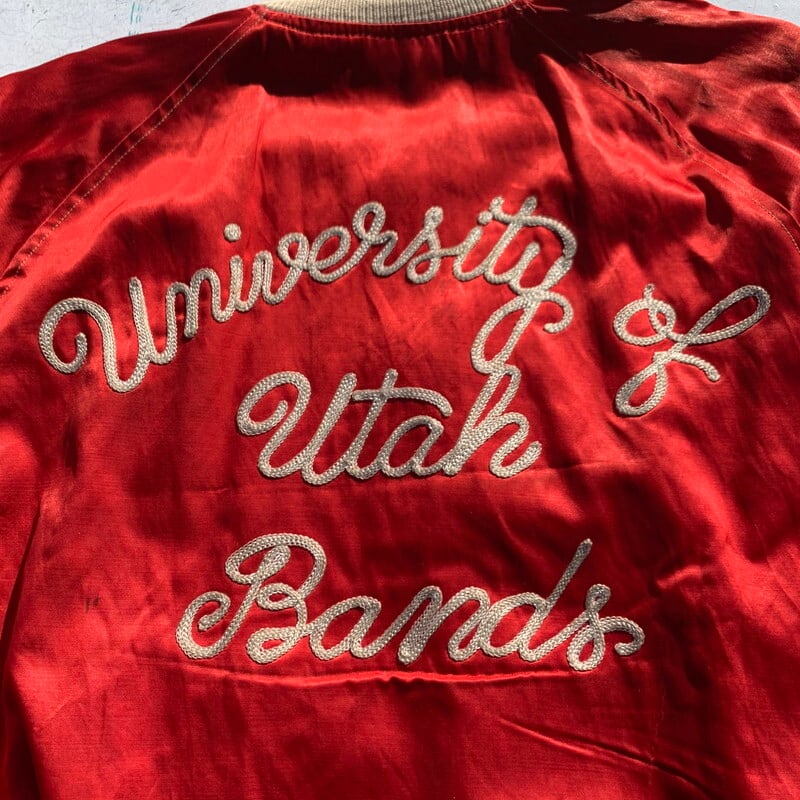 40's 50's EMPIRE エンパイア サテン スタジャン ボタスタ 赤 レッド UNIVERSITY OF UTAH BANDS ユタ大学 マーチングバンド 黒刺繍タグ コットンリブ 36~38位 希少 ヴィンテージ BA-832 RM1201H