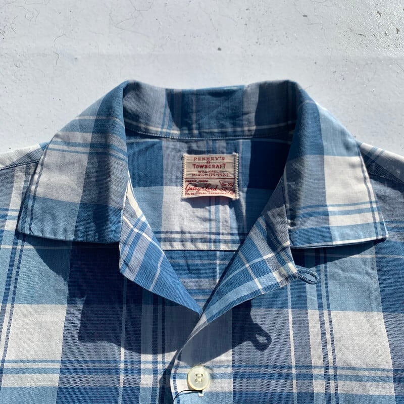 50's PENNY'S ペニーズ TOWNCRAFT タウンクラフト オープンカラーチェックシャツ Galey&Lord 別注 ブルー 15-15 1/2 M位 美品 開襟シャツ 希少 ヴィンテージ BA-834 RM1203H