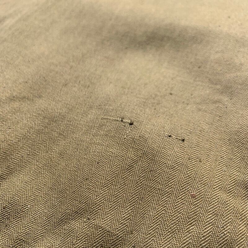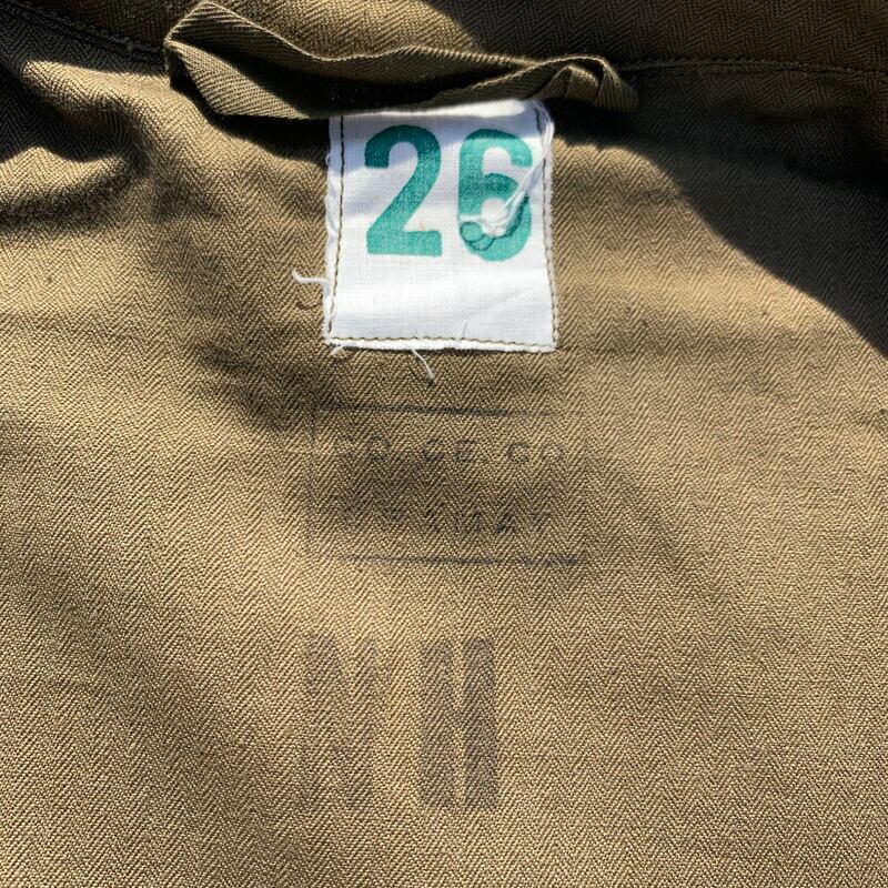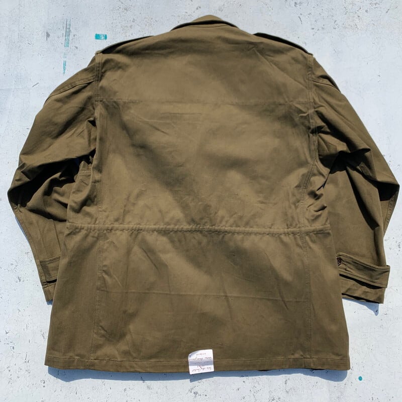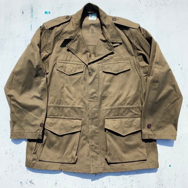 50年代頃のフランス軍M47フィールドジャケットです。米軍のM-1943をベースに作られたという説もあるこちらは、HBT(ヘリンボーンツイル)を使用した後期型で、サイズ表記もスタンプではなくパッチが取り付けられています。米軍のフィールドジャケットに比べ色味もコヨーテブラウンに近いオリーブで、シルエットもどこかスタイリッシュな印象を受けます。背面下にはmodele 47と書かれた紙タグが取り付けられていますが、詳細は不明です。おそらく水に通っていないでデッドストック品と思われます(店頭販売していますので、試着程度の使用感はございます)。汚れやダメージも無く、サイズもM~L相当の26表記ですので、ゴールデンサイズと言えます。昨今ユーロミリタリーの注目も増え、人気急上昇中のフランス軍のアイテムですので、お探しだった肩は是非この機会にいかがでしょうか。