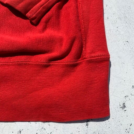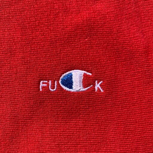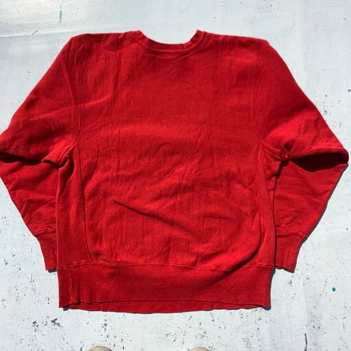80年代のChampionリバースウィーブスエットです。カレッジ物に付くことが多い2枚タグです。(大学別注カラーなどで後染めしたボディの色落ちを考慮して洗濯は分けて洗う事。といったことが書かれています)。プリントの入らないシンプルな1着ですが、胸元の目玉の付近にとあるショップがカスタムで刺繍を入れており、FXXKという(伏字にしております)なんとも遊び心を掻き立てるデザインです。ここ最近のリバースウィーブ人気も有り、状態の良い個体も探すのが難しくなっており、こういったカスタム品も同じものを探すとなると非常に困難です。サイズはゴールデンのLサイズ。撚れやダメージも無い美品です。お好きな方にはおすすめな1着です。