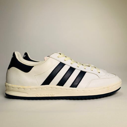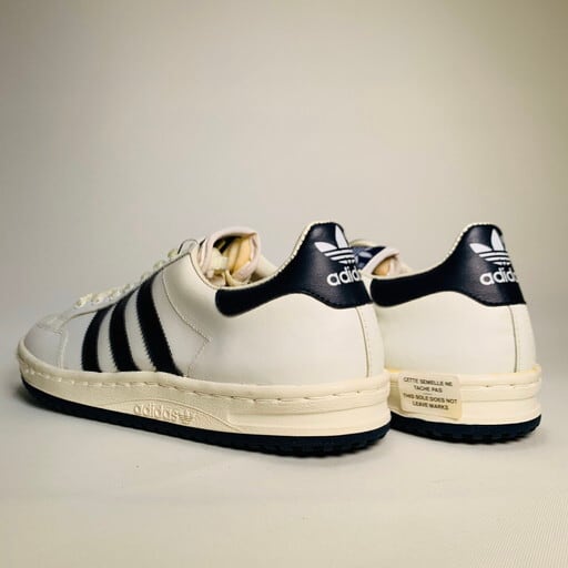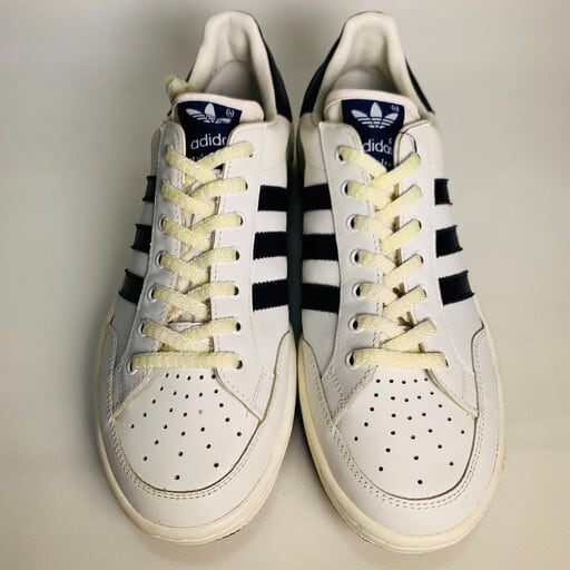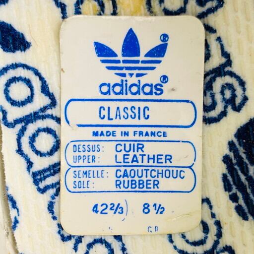 80年代のadidas CLASSICです。1984年にバスケットボールシューズとして誕生したこちらは希少なフランス製のデッドストックです。こちらはCLASSIC LOWではなく単体のモデル名で、ハイカットになるとTOURNEY(ターニー)というモデル名に変わります。アディダスではこのようにLOWとHIで名前が違うものがいくつか存在しています。印ソールについていたシールやサイドに検品済みの意味のシールも残ったミントコンディション。保管に夜シミなどもほとんどございません。シューレースはやや変色しています。箱付き。サイズはUS8.5とゴールデサイズです。アディダスのフランス製は人気も高いのでこちらのようなデッドストックは大変希少です。コレクションにオススメです。※年代物のシューズですので、見えない内部劣化がある場合がございます。あくまで観賞用にお買い求めください。