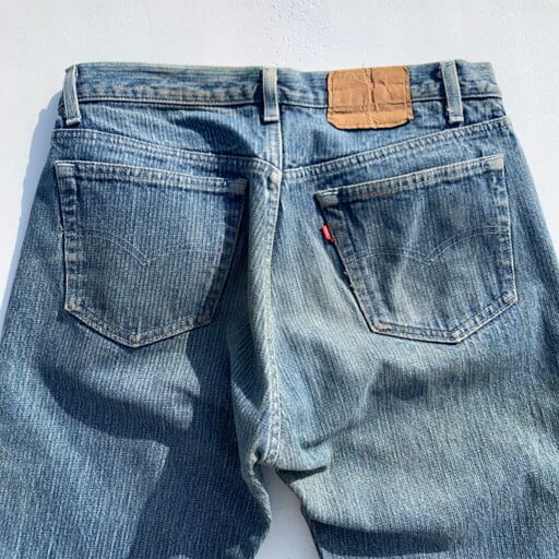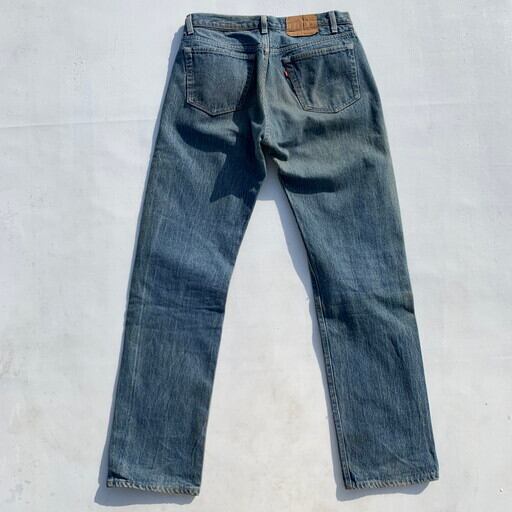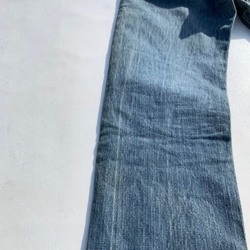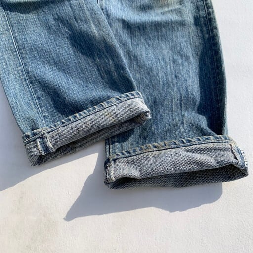 80年代のLevi's 501-0119ストライプデニムパンツです。先日アップしたパンツと同じシリーズの型番違いです。右綾ではありますが、通常の織り方と違いWRANGLERでいうブロークンデニムのようになっており表面にストライプ模様が現れています。赤耳やレギュラーと同じ時期に製造されたモデルですが、色のバリエーションやシルエットなど数種類発売されていたようです。こちらは501の定番シルエットでレングスも恐らくオリジナルです。腿や膝にうっすらとシミがございますが、大きなダメージはございません。レギュラージーンズの中でも名作といえる1本です。W33とゴールデンサイズですので、是非いかがでしょうか。