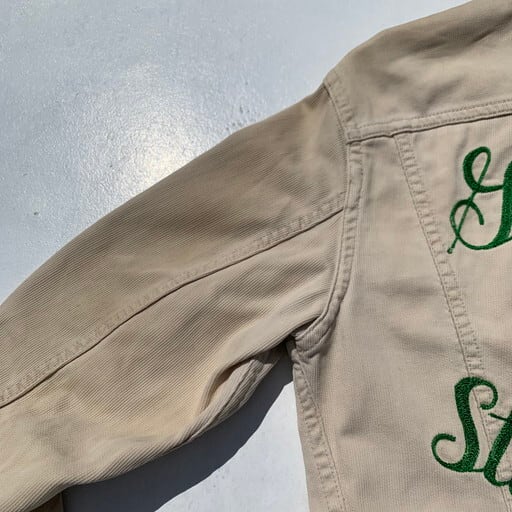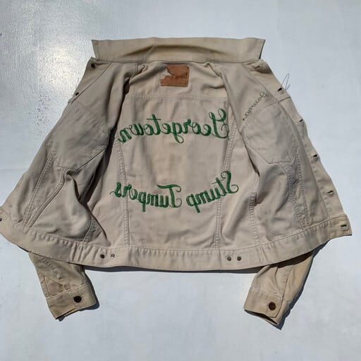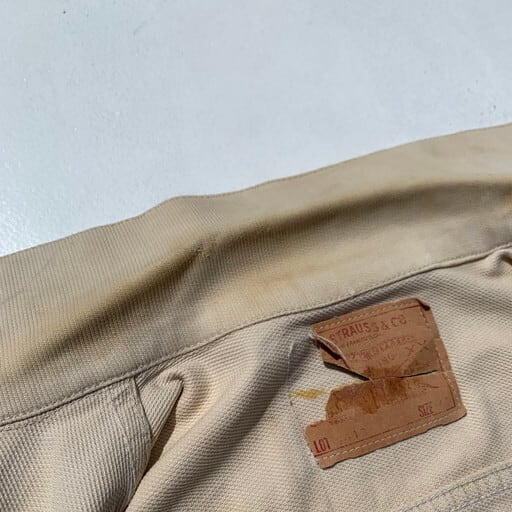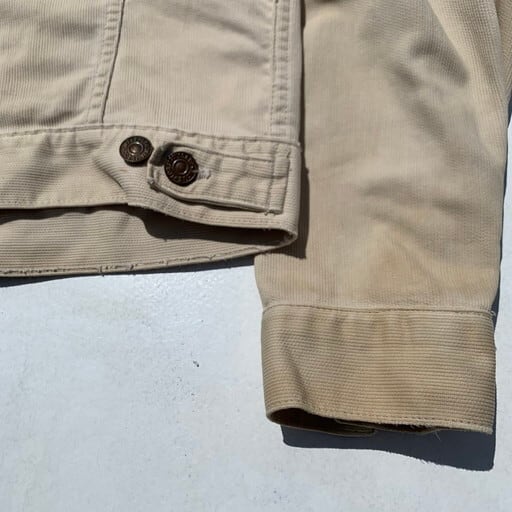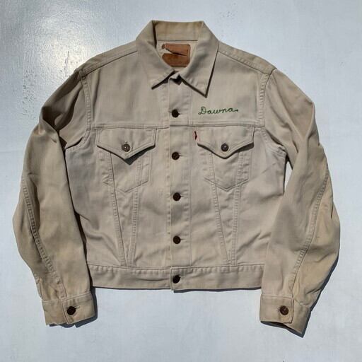 60年代のリーバイス941BXXピケジャケットです。1960年代に東海岸の学生ファッションとして流行していたツイルジーンズに続き1961年からカリフォルニアンジーンズというスリムフィットモデルとして発売されたアイテムです。紙パッチは割れており、一部欠損しています。こちらはXX表記では無く、ギャラ無しの後期モデルです。両面赤タブのビッグEで均等Vとなります。胸元と背面にグリーンのチェーンステッチが施されており一味違った表情でかっこいい1着です。表記サイズは36~38で着用感は34~36といった具合です。小さめのサイズですので、女性にもオススメです。ダメージはございませんが全体に若干ヤケや薄汚れがございます。製造期間も短いアイテムですので、お探しだった方は必見です。
